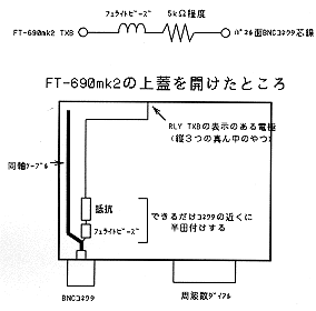 本体はなるべくでしたら触りたくありませんが、一度この改造をしておくと他のリニアアンプを接続したり、トランスバータやプリアンプなど、付加機器の送受信切換に広く応用できて便利です。それほど難しい改造ではないので、保証期間が切れていたり、自作をする人なら改造をお奨めします。ただし、改造による故障は筆者は責任を持ちません。各自の責任で行って下さい。過去に2台の改造を行いましたが支障はありませんでした。勿論、FT-690mk2の接続図を調査し、回路的に支障がないからこそ改造したのですが。
