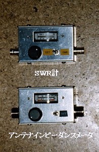 左の写真は、FCZ研究所の「SWR計」と「アンテナインピーダンスメータ」です。もちろん電子キットを組み立てたものです。これでも簡単なチェックには役に立ちます。