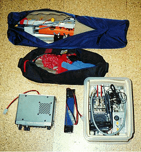 下のラインは、左からFT−690Mk2(50MHzの無線機)、2.2Ahの鉛電池、 そして最後の箱がエレキー・SWR計・イヤホンなどの小物セットです。