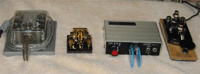 左から、HI-MOUNDのパドル、G4ZPYミニパドル、GHDのエレキー、ベビー電鍵となっています。