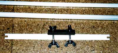 そこで登場したのが左の写真の金具です。そうエレメントクランプです。ポールに穴を空けないと使用できませんが、重量的には半分以下ですみます。(写真のエレメントクランプで50gです)