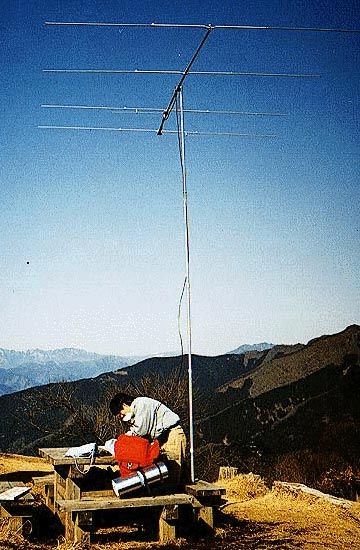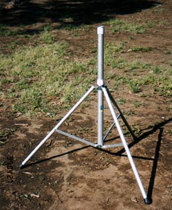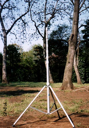 左の写真は、有山工業のYP−460S(ポール)とST−460(スタンド)を組み合わせた物です。このポールで4エレHB9CVクラスまでは問題なく上げる事ができます。