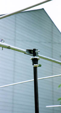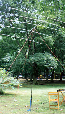 軽量5エレF9FTを付けステーを張って自立させてみました。強風さえなければこのまま使用可能です。たださすがにF9FTでは受風面積が大きいので、もう少し小さなアンテナにした方が無難だと思います。